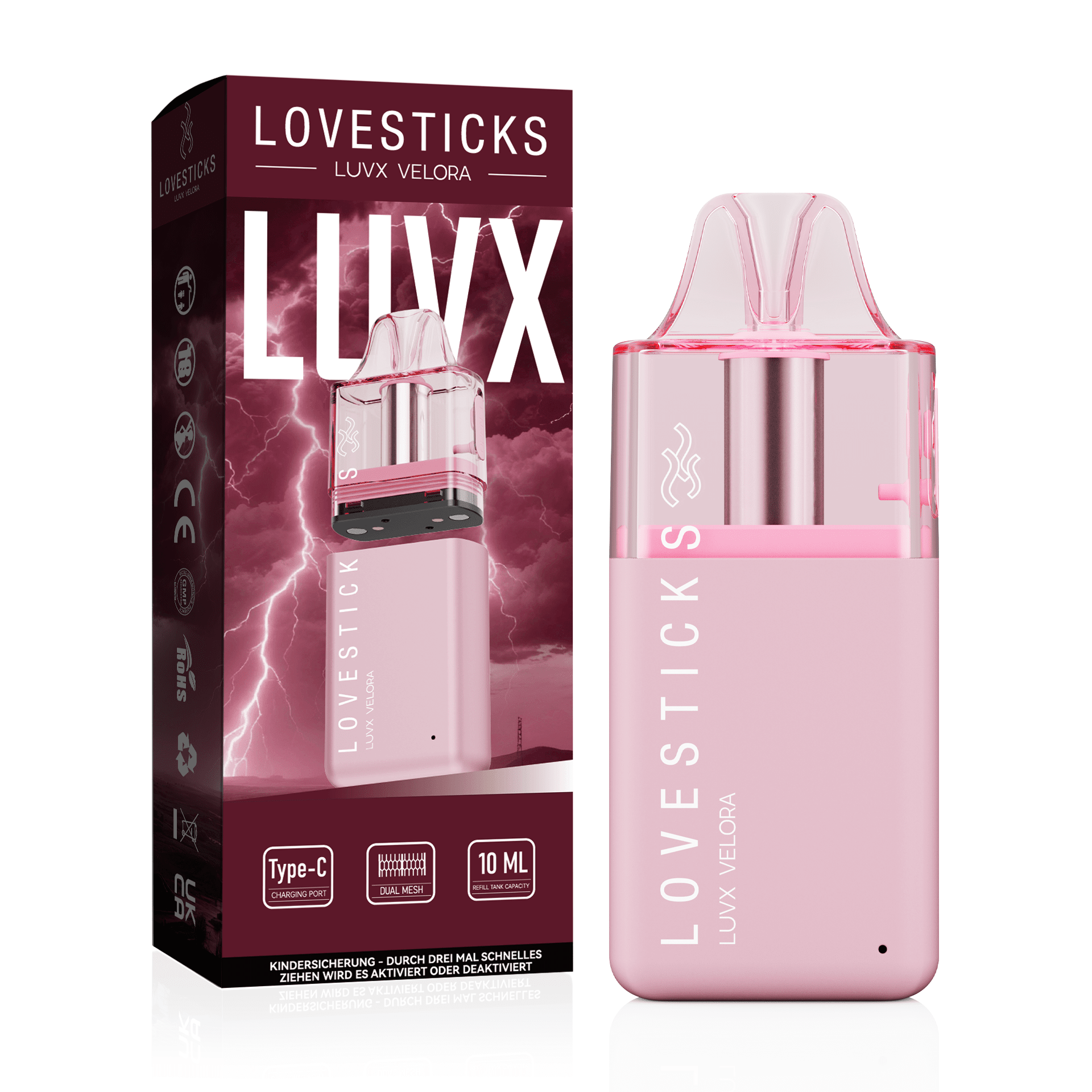 Das LUVA Modell von Lovesticks ist eine Mehrweg E-Zigarette, welche mit einem Pod-Kit-System, also einem Akku, versehen ist. Hierdurch ist die Vape ladbar (nachhaltiger) und kann sofort in Betrieb genommen werden, wenn E-Liquid Pods (Liquid Tank & Mundstück) hinzugegeben werden.