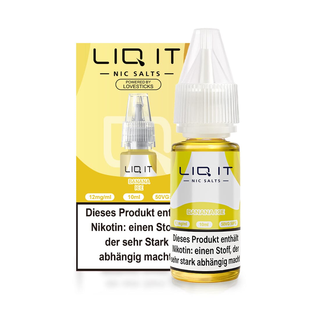 Banana Ice LIQIT ist in 10-ml-Flaschen erhältlich und in verschiedenen Nikotinstärken sowie nikotinfrei verfügbar. Das Liquid wird mit Nikotinsalz angeboten und ist für die Verwendung in nachfüllbaren E-Zigaretten vorgesehen.